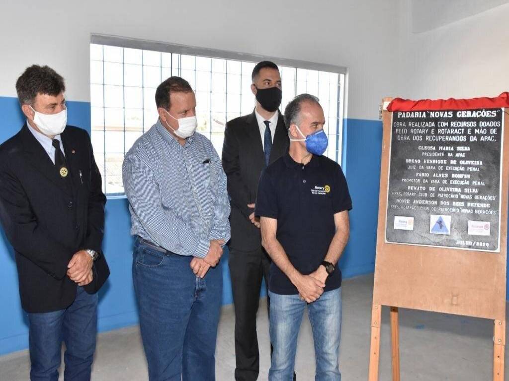 Inaugurada no dia 31 de julho de 2020 a Padaria Novas Gerações, dentro da APAC (Associação de Proteção e Amparo ao Condenado) de Patrocínio, MG. O Rotaract e o Rotary de Patrocinio Novas Gerações custearam todo o material de construção gasto na obra, sendo a mão de obra dos próprios recuperandos. O objetivo é produzir pães e quitandas, pelos próprios recuperandos, para abastecer a APAC e demais entidades sociais da cidade. Para nós, rotarianos, é motivo de muito orgulho poder participar de um projeto tão importante, alavancado pelos nossos afilhados rotaractianos. Parabéns Rotaract e parabéns Rotary Novas Gerações !!